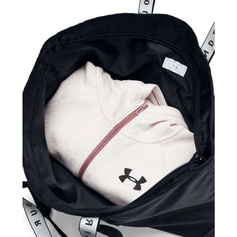 Grande compartimento principal fechada por zíper com puxador com logo UA;