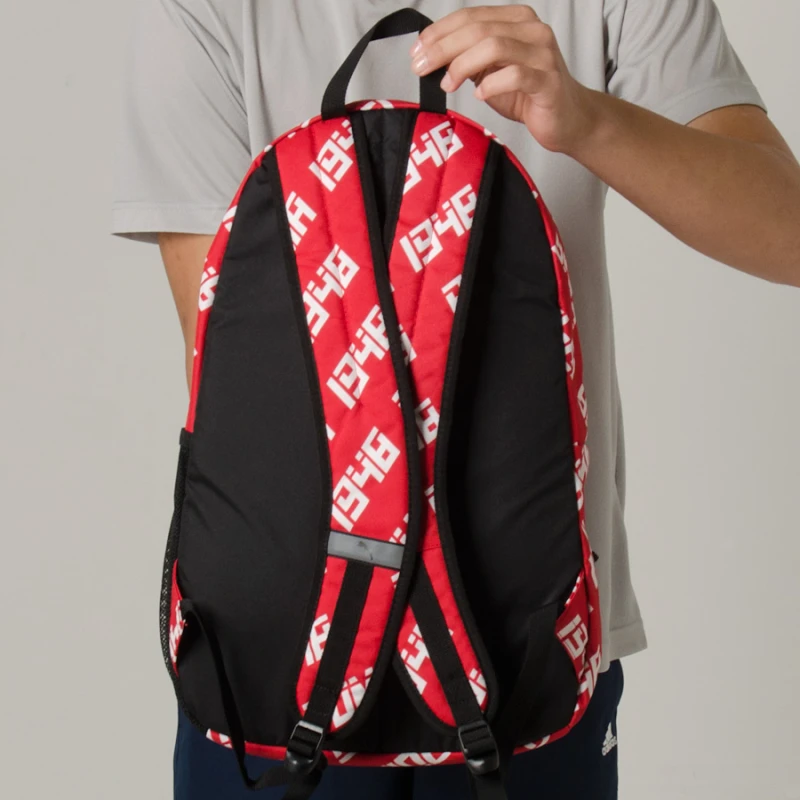 Medidas do modelo Alessandro que usa a a Mochila Puma Academy nas cores: Branco/Preto, Verde/Bege e Vermelho/Branco
