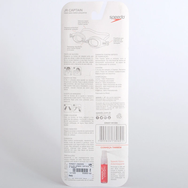 O Óculos Speedo Captain Infantil é excelente para a natação infantil, possui lentes em policarbonato com proteção ultravioleta, conta com tira em silicone, desenho hidrodinâmico, ideal para ser usado no lazer ou durante o processo de aprendizado.