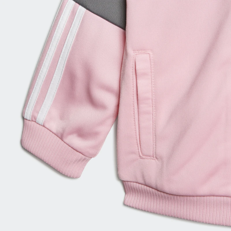 Confeccionado em malha 100% poliéster reciclado, com as Três Listras brilhantes na jaqueta e nas calças.