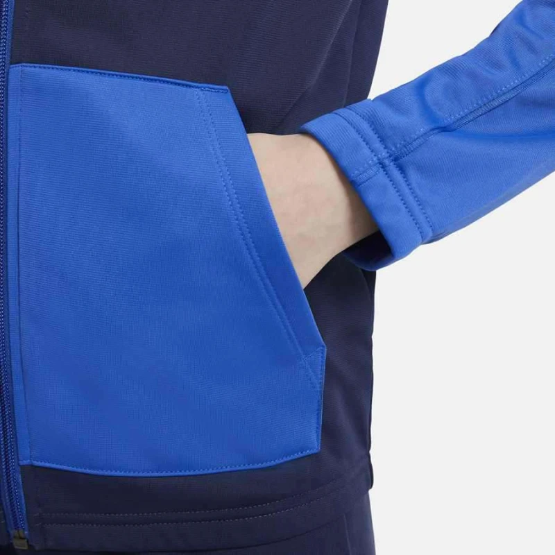 A jaqueta tem um design de zíper inteiriço para personalizar o conjunto.