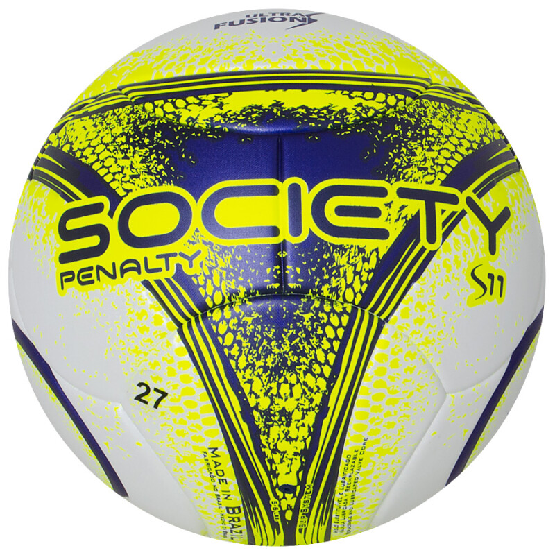 Desenvolvida para o futebol em gramado artificial, a Bola Penalty Society S11 R3 Fusion VIII é confeccionada em poliuretano laminado e conta com 12 gomos sem costura, ligados através do sistema Ultra Fusion, que garante 0% absorção de água, bem como alta resistência sem perder a maciez, além de ser 100% esférica.