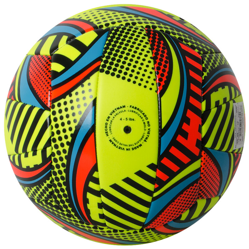 Fabricada em PVC, com miolo removível, a bola é costurada com 18 gomos, leve e resistente.