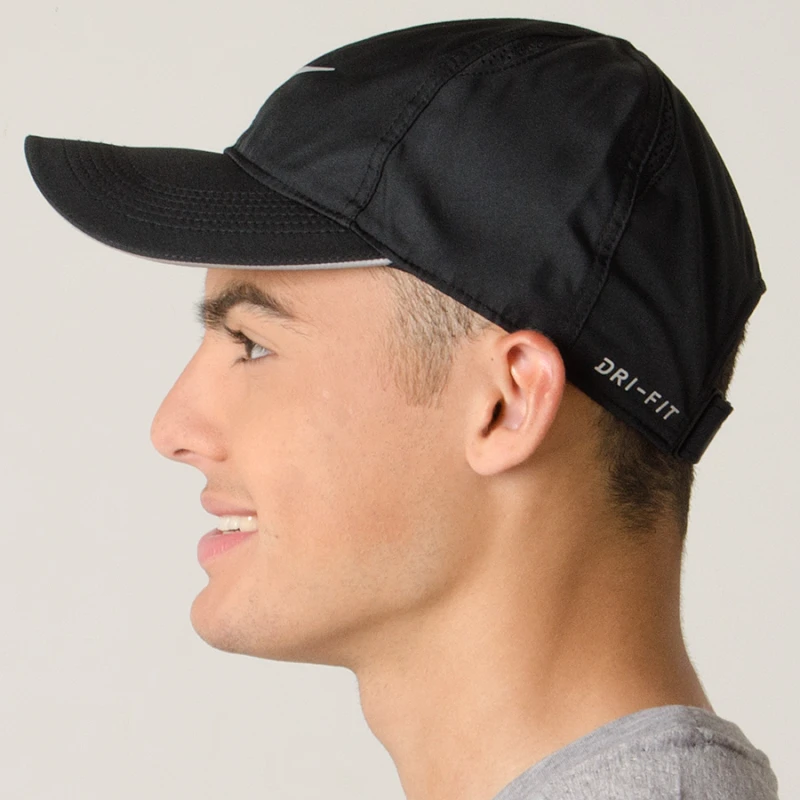 O Boné Nike Featherlight complementa o seu visual, oferecendo cobertura leve que absorve o suor.