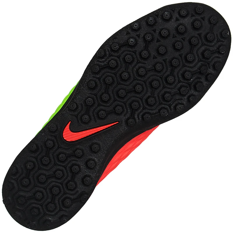 Conta com o solado para gramados (TF) com travas de borracha para tração em superfícies sintéticas.