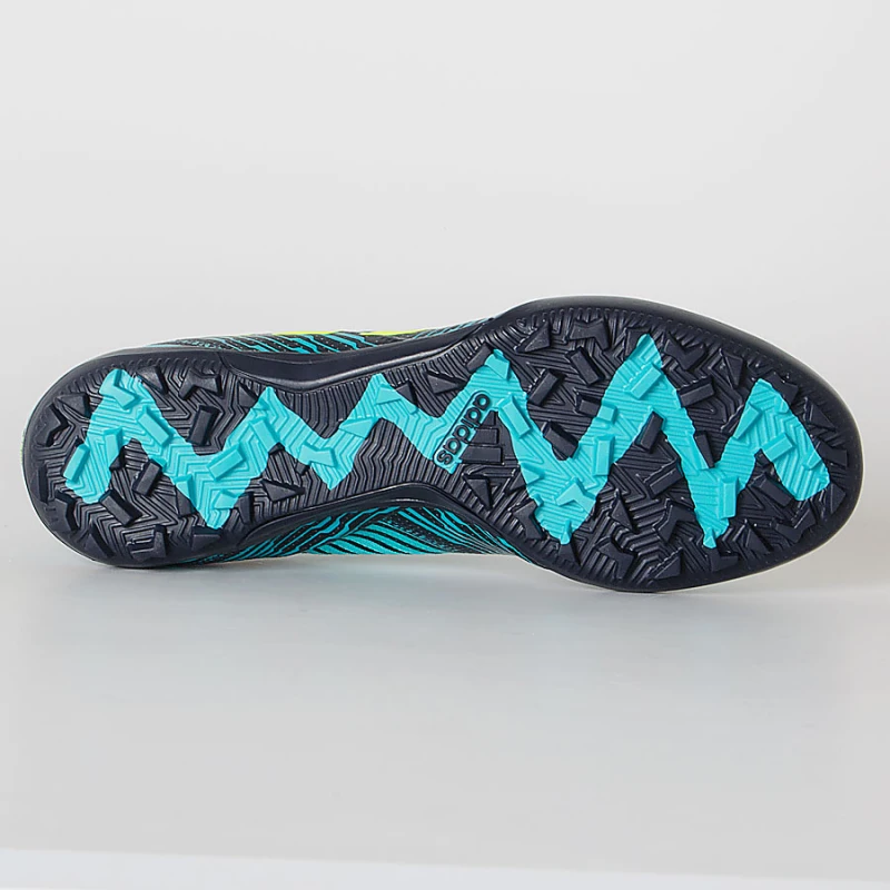 O solado é emborrachado com micro-travas fixas, conta ainda com a tecnologia Agility que permite jogadas explosivas na grama sintética.