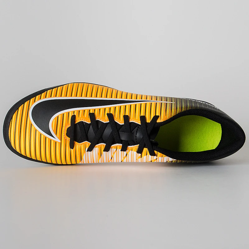 A Chuteira society Nike Mercurial X Vortex 3 TF confeccionada em material sintético leve, foi pensada para os campos sintéticos e oferece muito mais aderência.