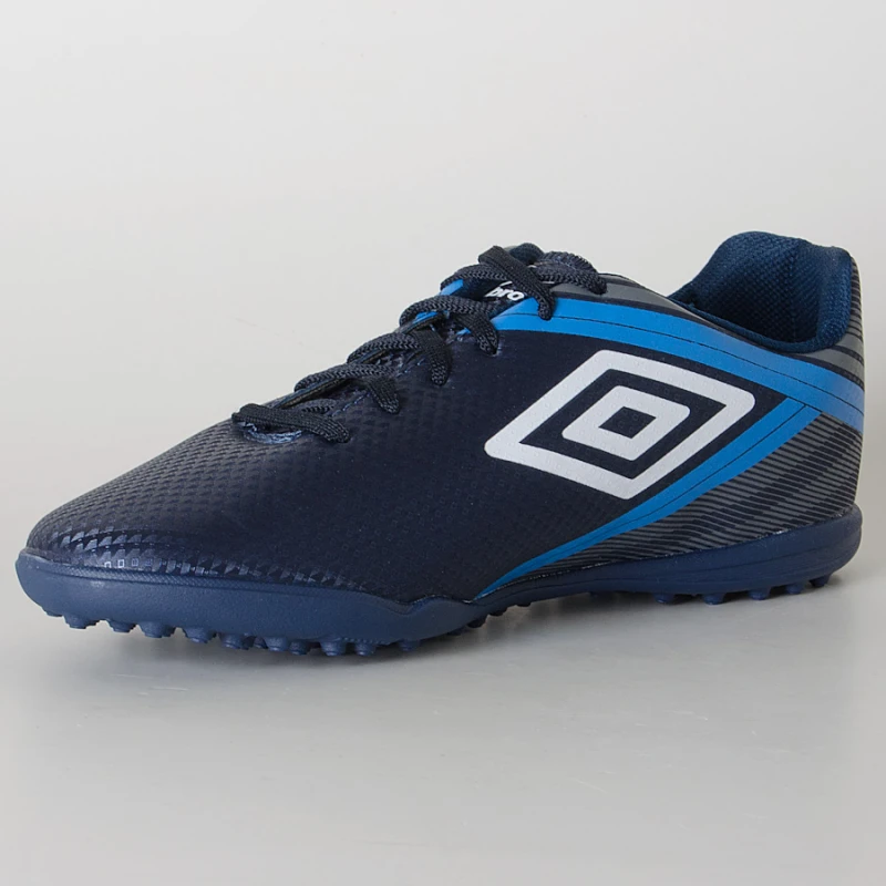 Possui cabedal leve e confortável em material sintético com solado específico para os gramados sintéticos.