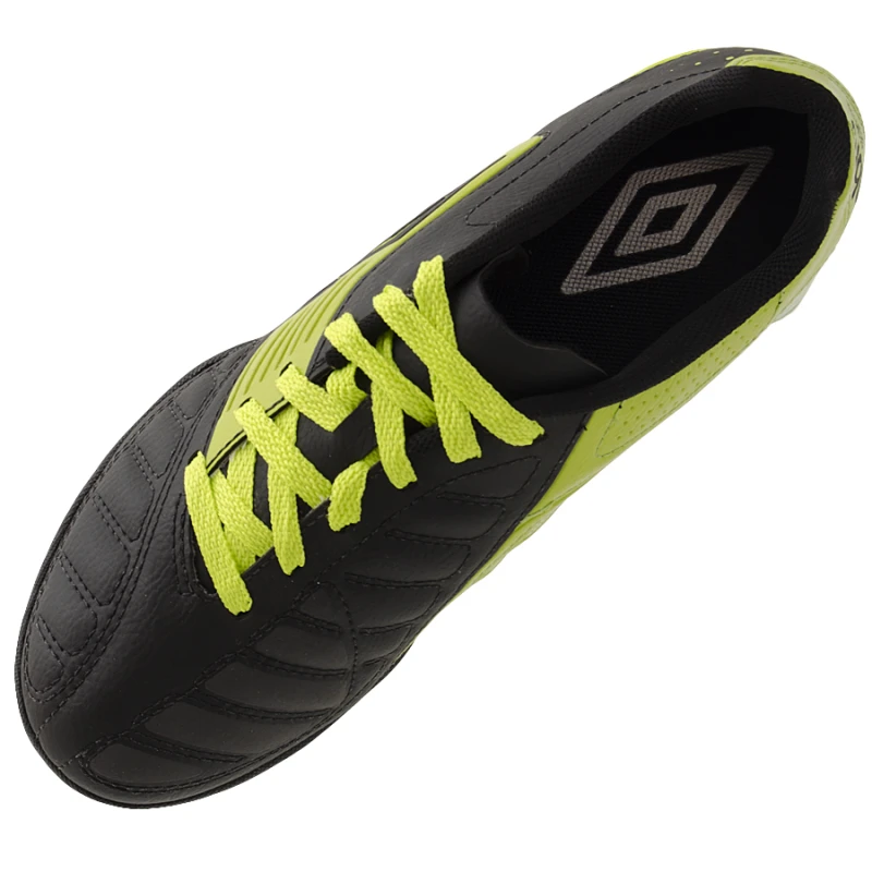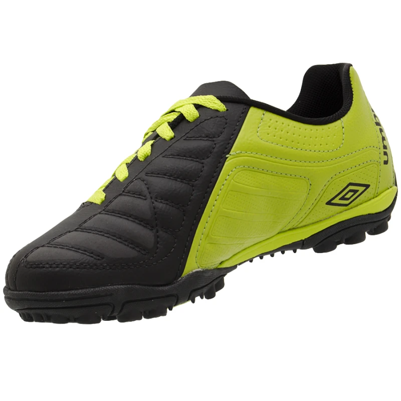 . A Chuteira Umbro Society Geometra BR representa a combinação perfeita de tecnologia e inovação. Desenvolvido para ajudá-lo a obter a melhor performance durante a prática do futebol de salão. Possui cabedal confeccionado em laminado sintético de PVC extremamente resistente, com sistema de amarração assimétrico. Essa combinação promove a comodidade do calce e limita o atrito com a pele sensível. Já a entressola conta com a palmilha em EVA moldada e recurso Octopax para melhor amortecimento de impacto na planta do pé. O solado em borracha com minicravos garante excelente tração em superfícies sintéticas.Especificações:Referência do fornecedor nas cores:Preto/Branco: 11135-121Branco/Preto: 11135-214Preto/Verde: 11135-101Chumbo/Branco: 11135-528