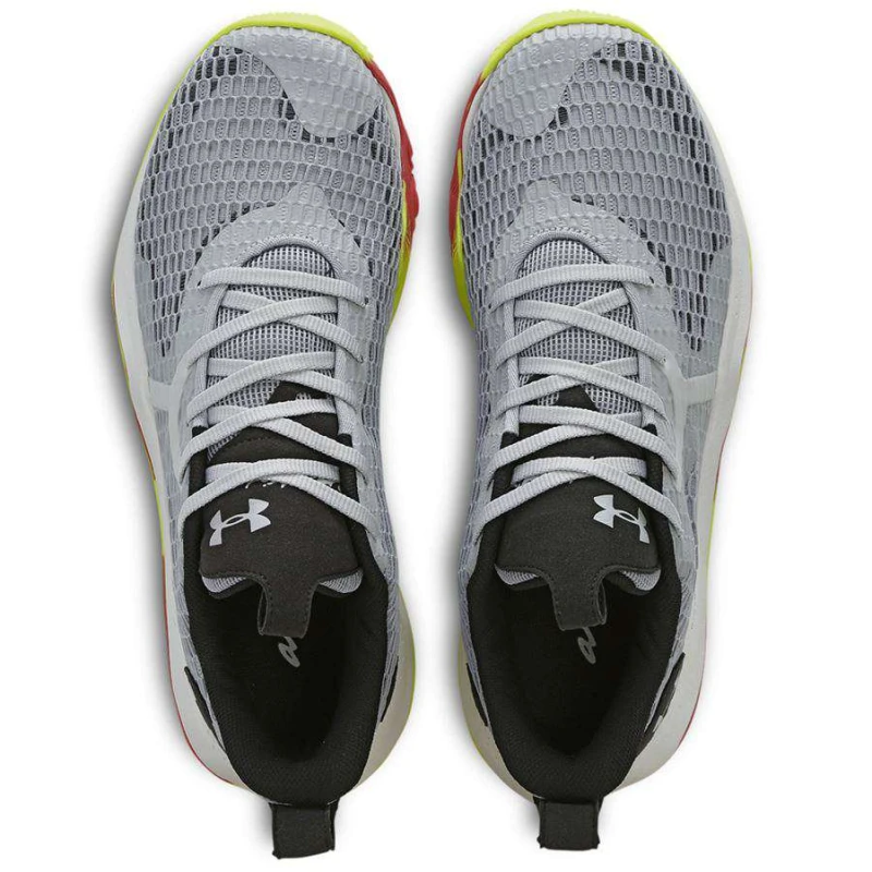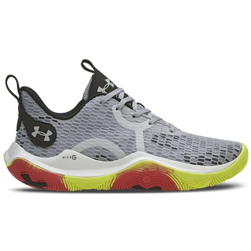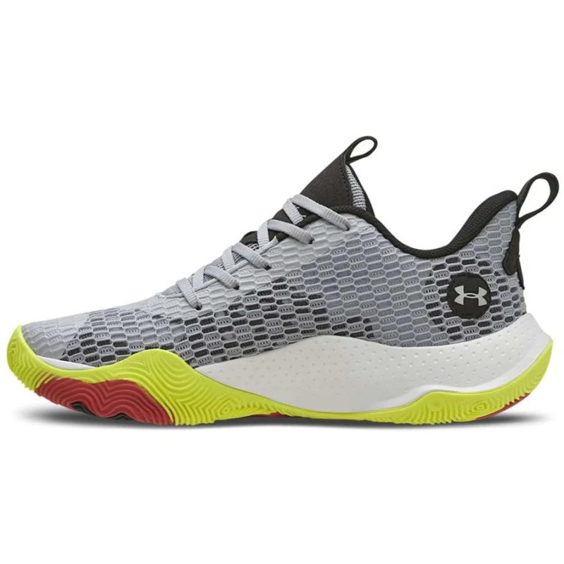 O Tênis de Basquete Masculino Under Armour Spawn 3 modelo que vem com áreas de malha expostas para respirabilidade e alta flexibilidade.