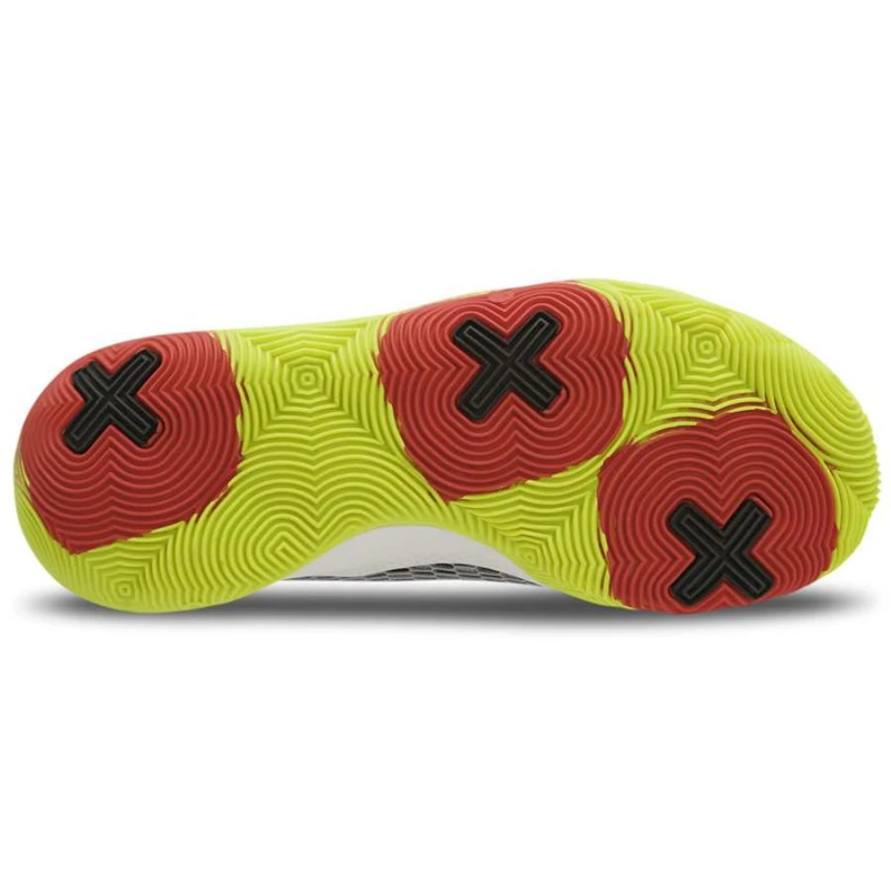 Cabedal: Camadas moldadas entrelaçadas de filmes TPU e malha revestida com PU para suporte em um design anatômico. Áreas de malha expostas para respirabilidade e flexibilidade.