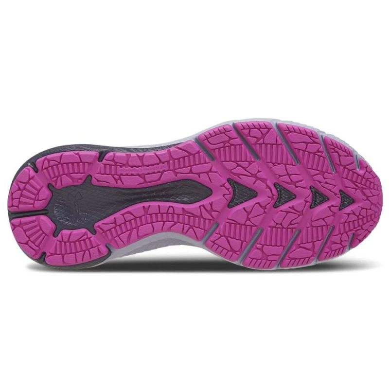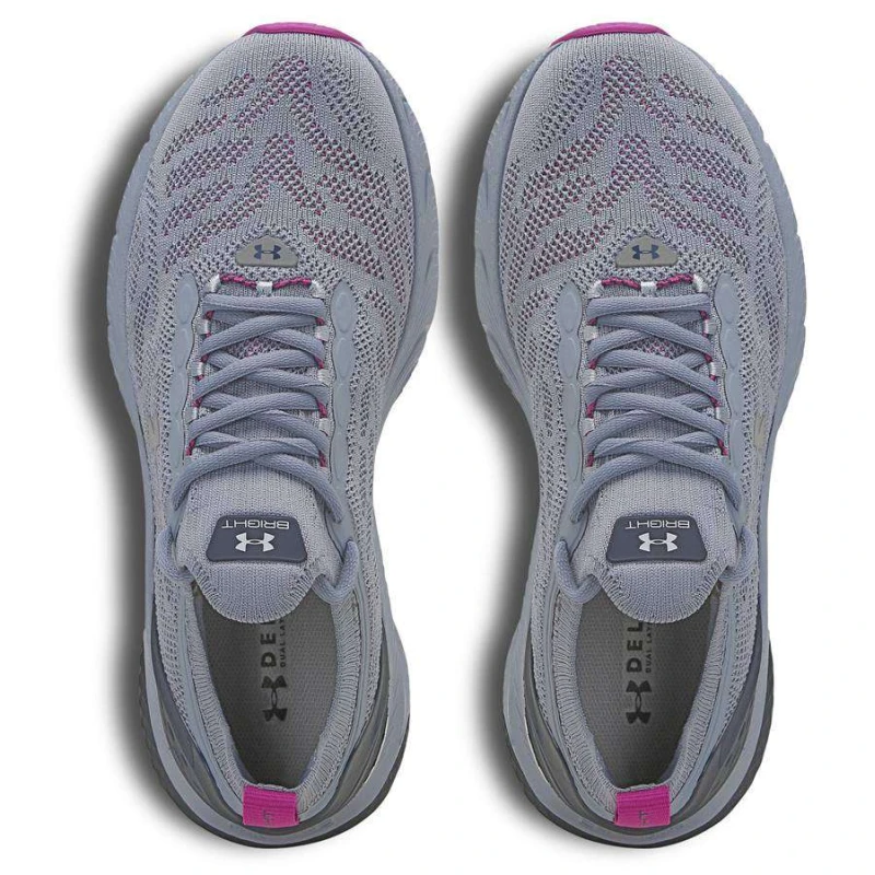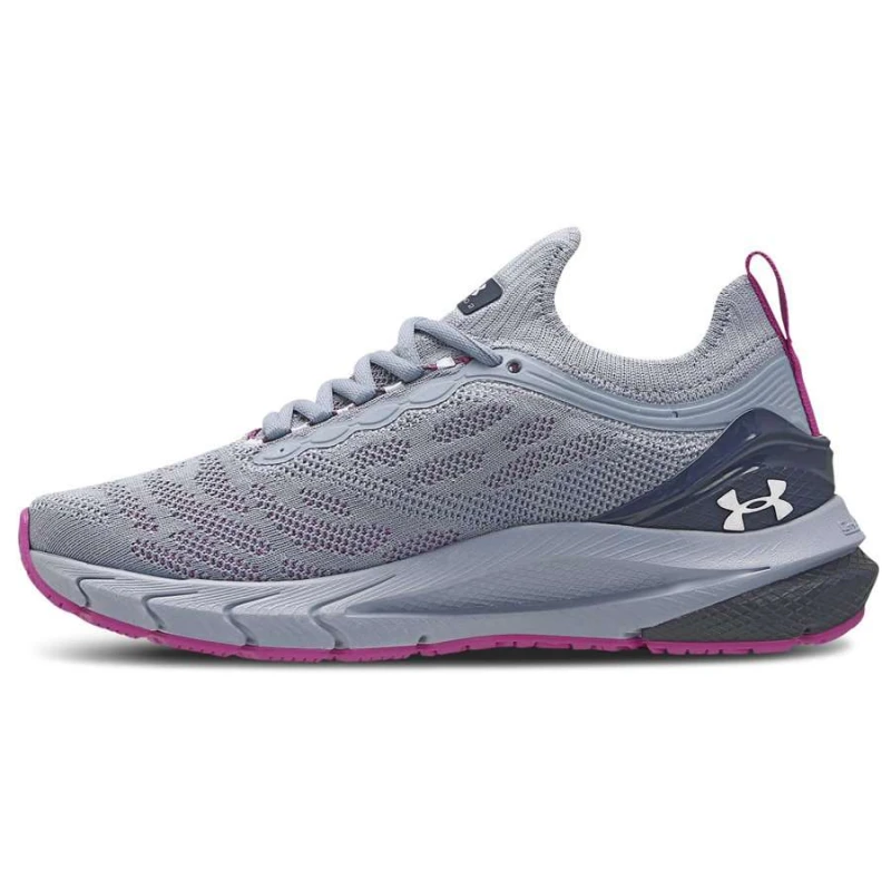 O Tênis de Corrida Feminino Under Armour Charged Surpass possui o cabedal gáspea em tecido retilíneo, com textura alto relevo que confere um visual 3D ao cabedal, vista em laminado TPU com detalhes em alta frequência.