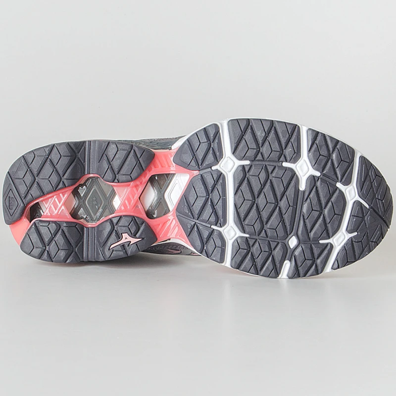 O solado do Tênis Mizuno Wave Creation 20 foi construído com borracha e carbono proporciona maior tração e aderência em diferentes superfícies.