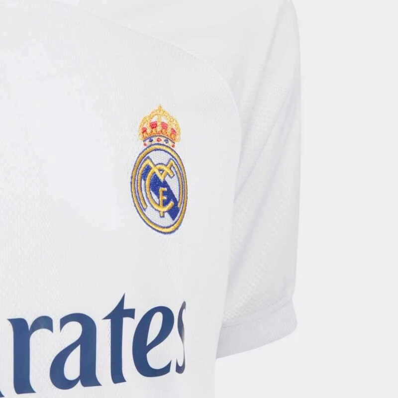 Esta Camisa 1 juvenil adidas reimagina a arte em colagem que estampa as ruas de Madri para celebrar aqueles que, a princípio, criaram o futebol.