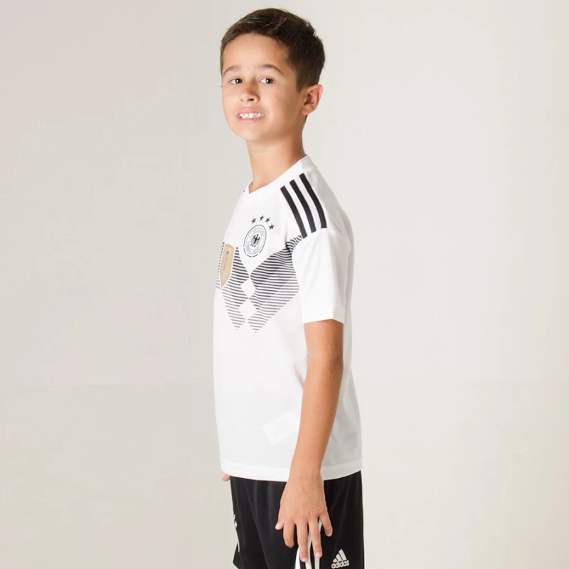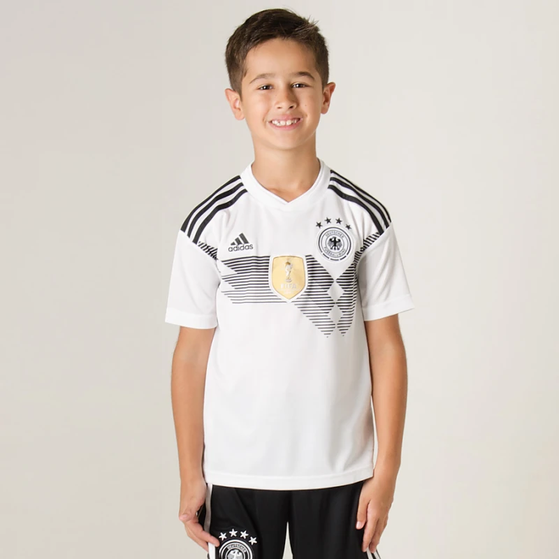 Inspirada no design clássico, a Camisa adidas Alemanha Oficial 1 2018 Sem Número Infantil é uma versão da peça que veste as atuais estrelas da Seleção Alemã.