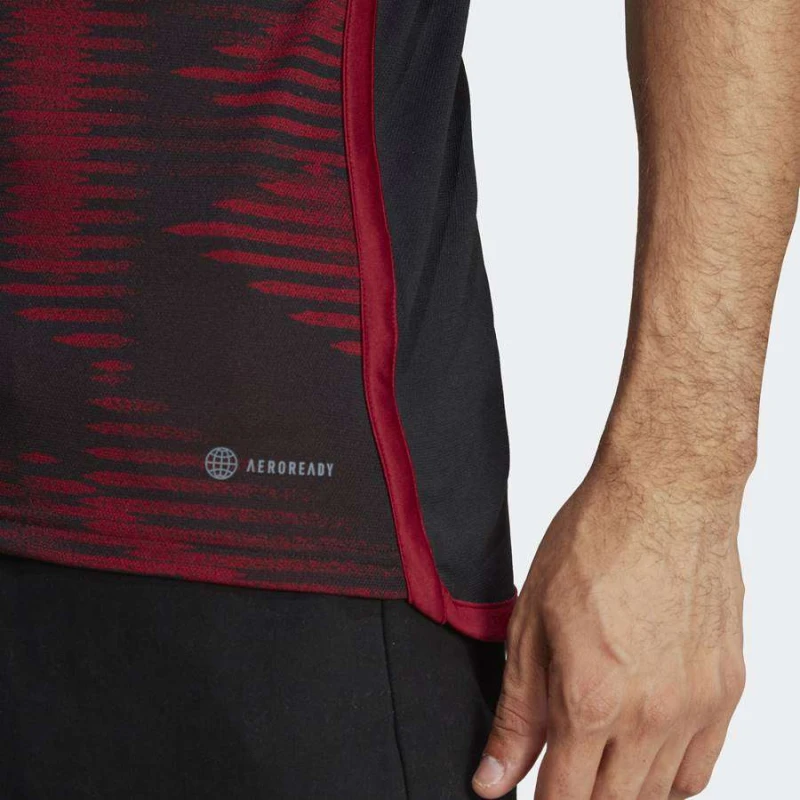 Criada para manter os torcedores confortáveis, ela possui painéis em mesh e tecido AEROREADY antitranspirante.