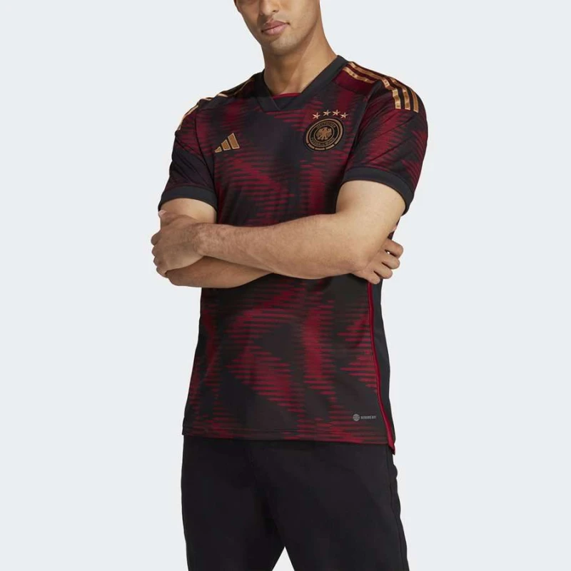 Ganhando destaque no peito com detalhes dourados, o escudo costurado da seleção é a estrela desta camisa de futebol adidas da Alemanha.