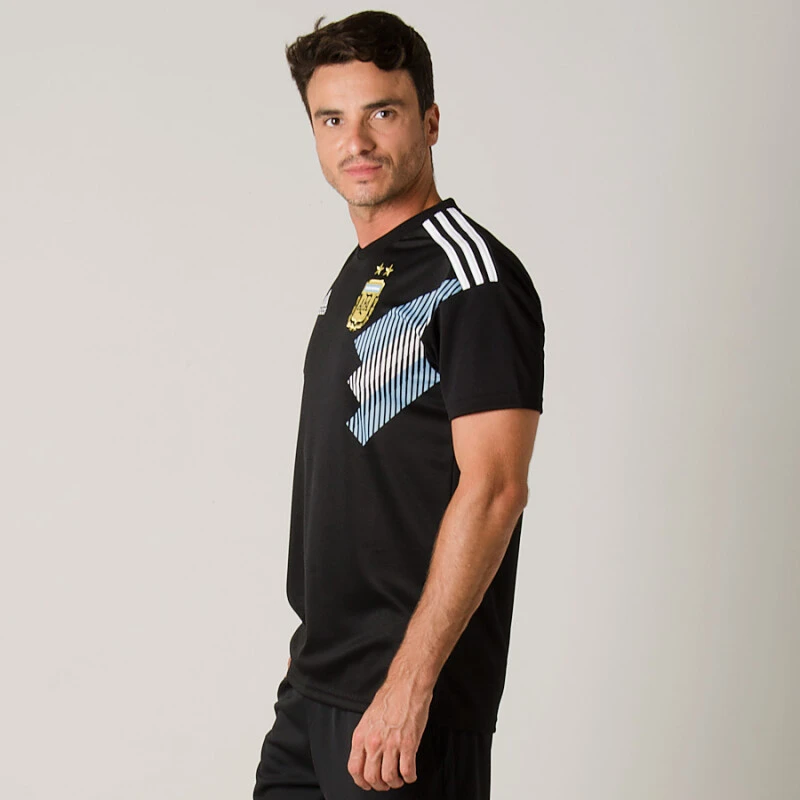 Versão da segunda camisa que veste a atual Seleção Argentina, a peça é confeccionada em 51% poliéster e 49% poliéster reciclado, tem um caimento ligeiramente mais folgado para o conforto da torcida e ostenta o escudo do time costurado no peito.