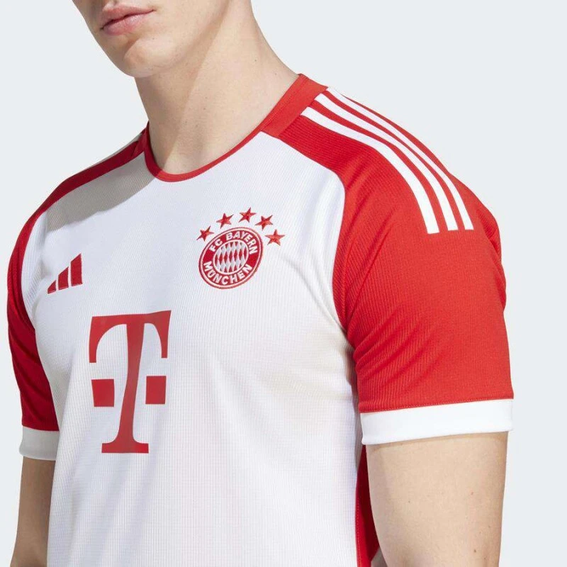 Uma reinterpretação moderna do primeiro uniforme lendário do clube, a camisa oficial do Bayern de Munique é uma homenagem aos grandes jogadores do passado.