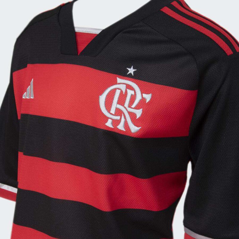 Esta camisa adidas do primeiro uniforme do Flamengo moderniza um dos uniformes mais icônicos do futebol.