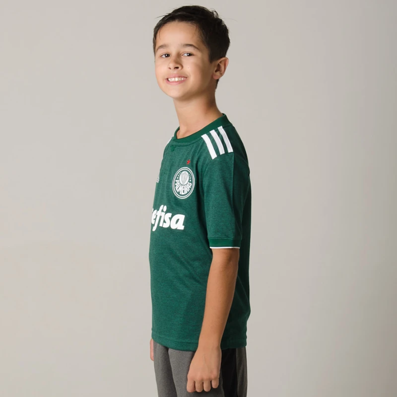 Por fim, a Camisa adidas Palmeiras Oficial 1 2018 Sem Número Infantil conta com patrocínio no tórax e costas.
