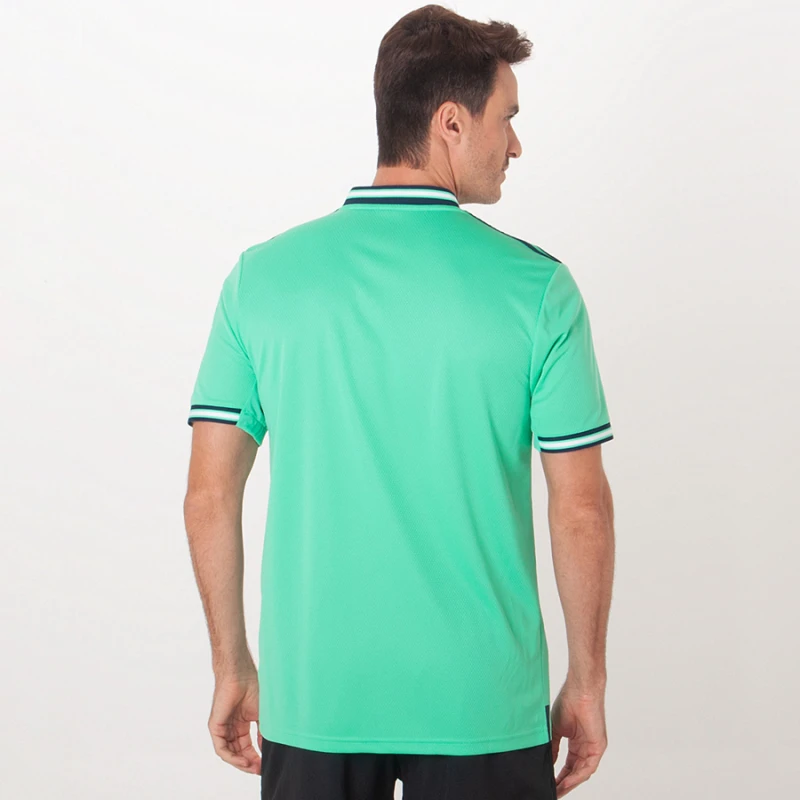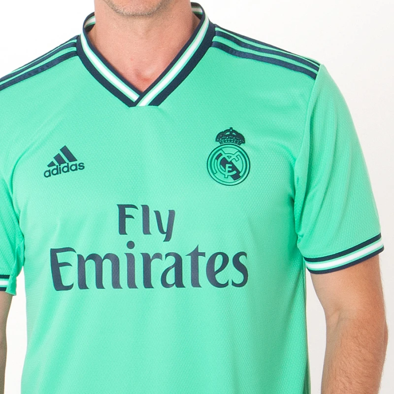 Para o uniforme alternativo do Real Madrid, a adidas oferece ao clube uma camisa verde com arremates na cor marinho.