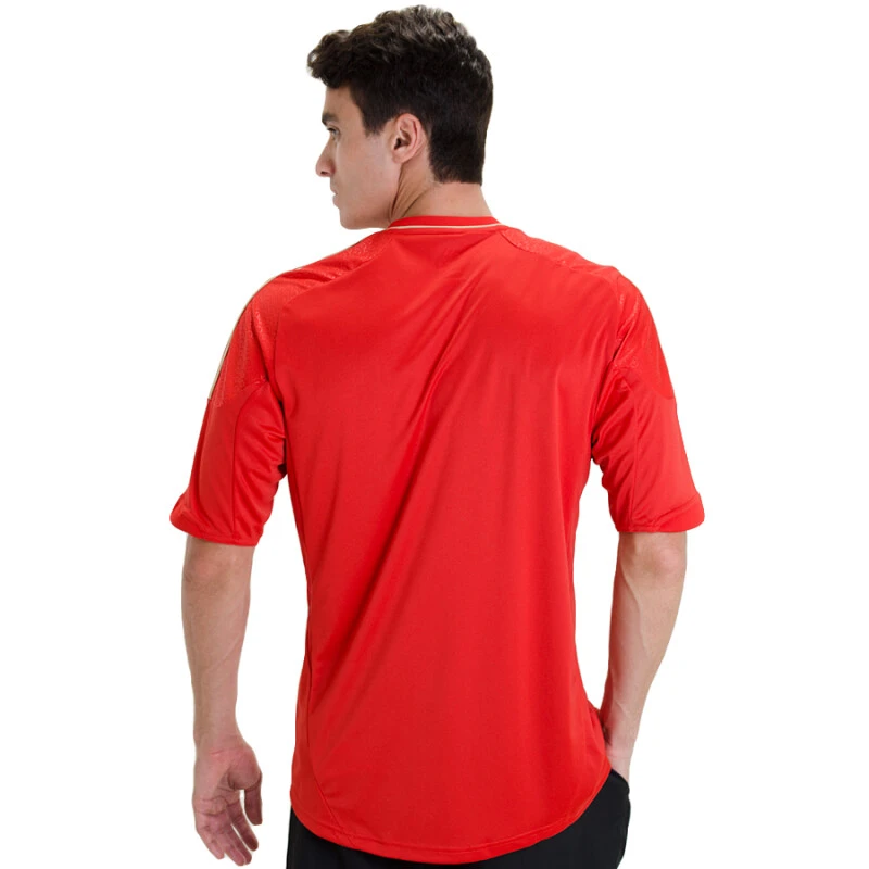 . Símbolo de raça e orgulho, a Camisa adidas Rússia Oficial 1 2012 Sem Número leva aos gramados a tradição de um país apaixonado pelo futebol. O primeiro uniforme dos Soviéticos possui um recorte bastante sofisticado e elegante, que promete marcar época nos gramados e também em sua coleção.Confeccionada em poliéster, conta com a tecnologia ClimaCool, o sistema que controla o calor conduz o suor e auxilia no desempenho dos craques.Medidas do modelo Julian que veste a Camisa adidas Rússia Oficial 1 2012 S/Nº na cor: VermelhoAltura: 1,84 m | Peso: 82 kg | Tórax: 98 cm | Manequim: 40 | Tamanho: MDimensões aproximadas do produto: Largura x Altura em cmP: 50 x 69 | M: 52 x 71 | G: 54 x 73 | GG: 56 x 75Especificações: Referência do fornecedor na cor:Vermelho: X12073