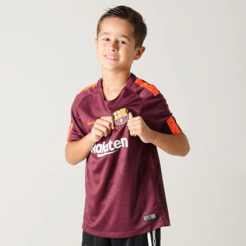 Demonstre toda a sua paixão torcendo pelo clube europeu com a mais nova Camisa Nike Barcelona Oficial 3 2017/18 Sem Número Infantil.