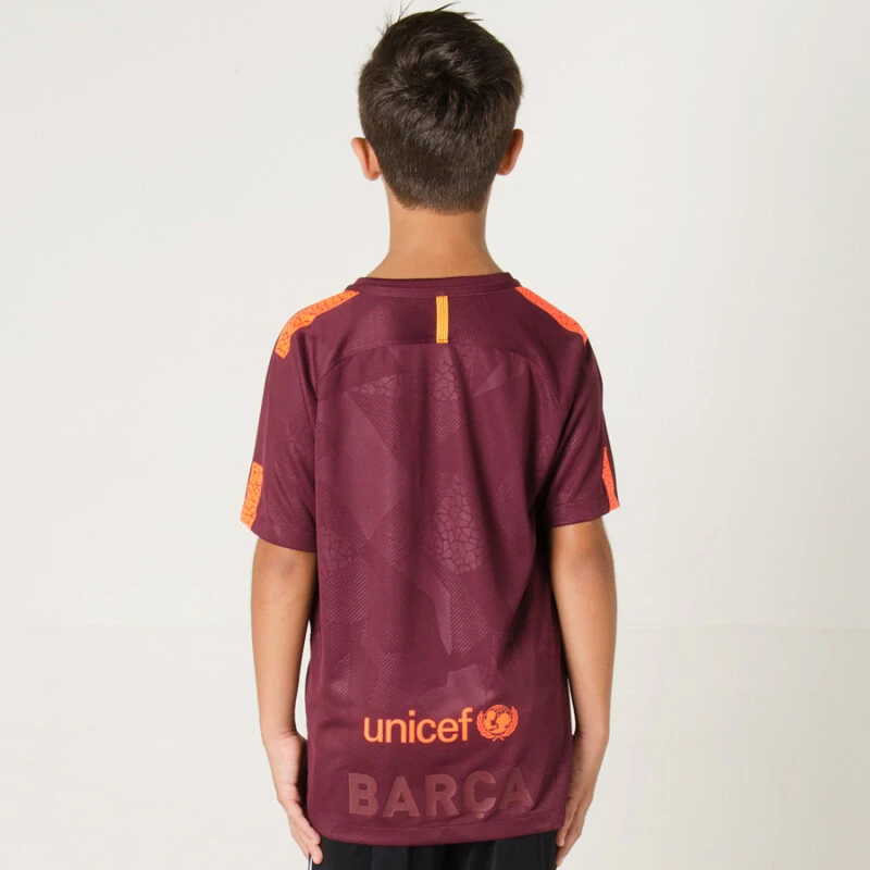 A Camisa Nike Barcelona Oficial 3 2017/18 Sem Número Infantil possui painéis com reforço elástico nas laterais e ajuste contornado que proporcionam mobilidade.