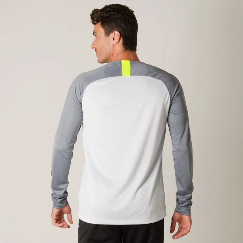 A Camisa Nike Brasil Oficial Goleiro 2018 Manga Longa traz detalhes que demonstram orgulho pela seleção, como escudo da CBF (Confederação Brasileira de Futebol) em destaque, além de elementos de desempenho.