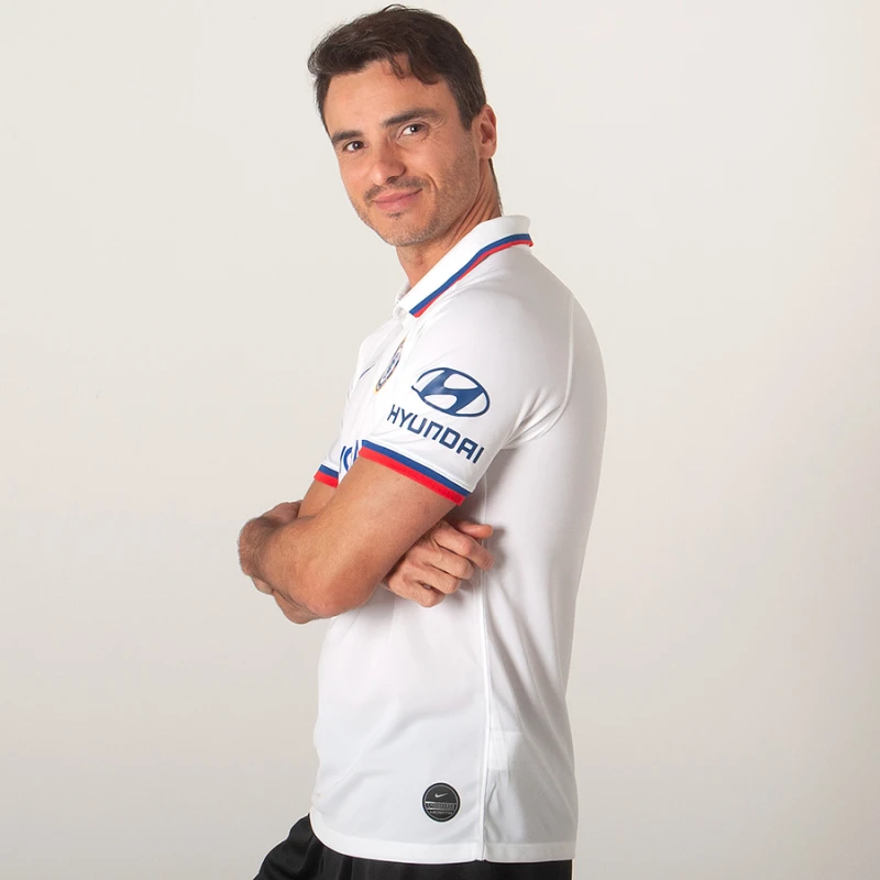 Medidas do modelo Julian que veste a Camisa Nike Chelsea Oficial 2 2019/20 Sem Número na cor: Branco no tamanho: M