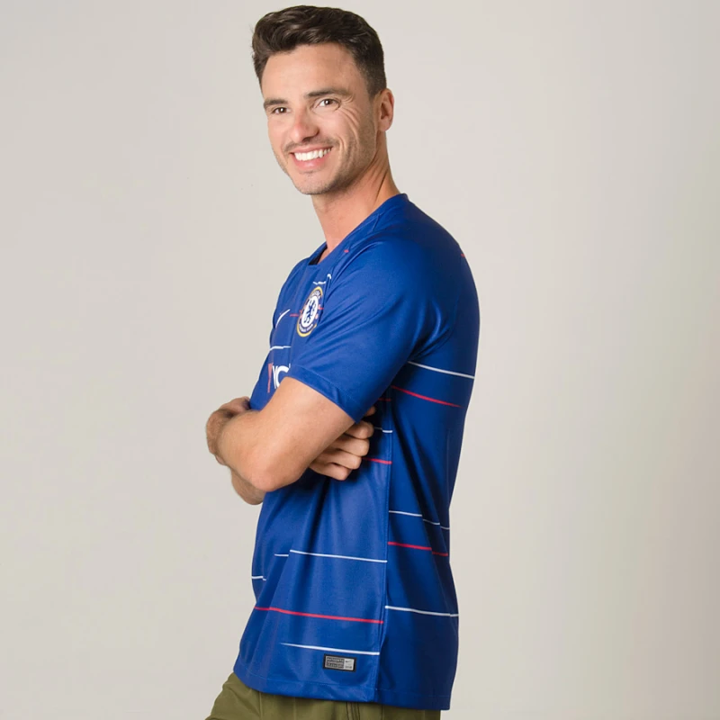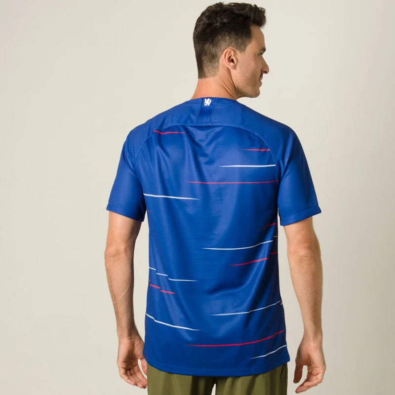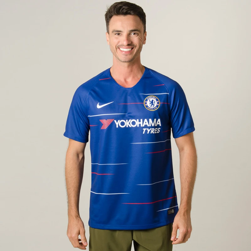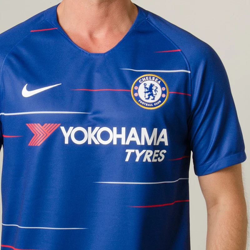 A Camisa Nike Chelsea Oficial 1 2018/19 Sem Número contém escudo do clube inglês em destaque para os torcedores fanáticos pelos The Blues demonstrarem orgulho e admiração em dias de jogos.