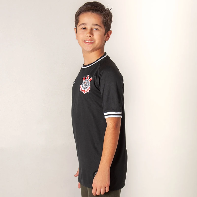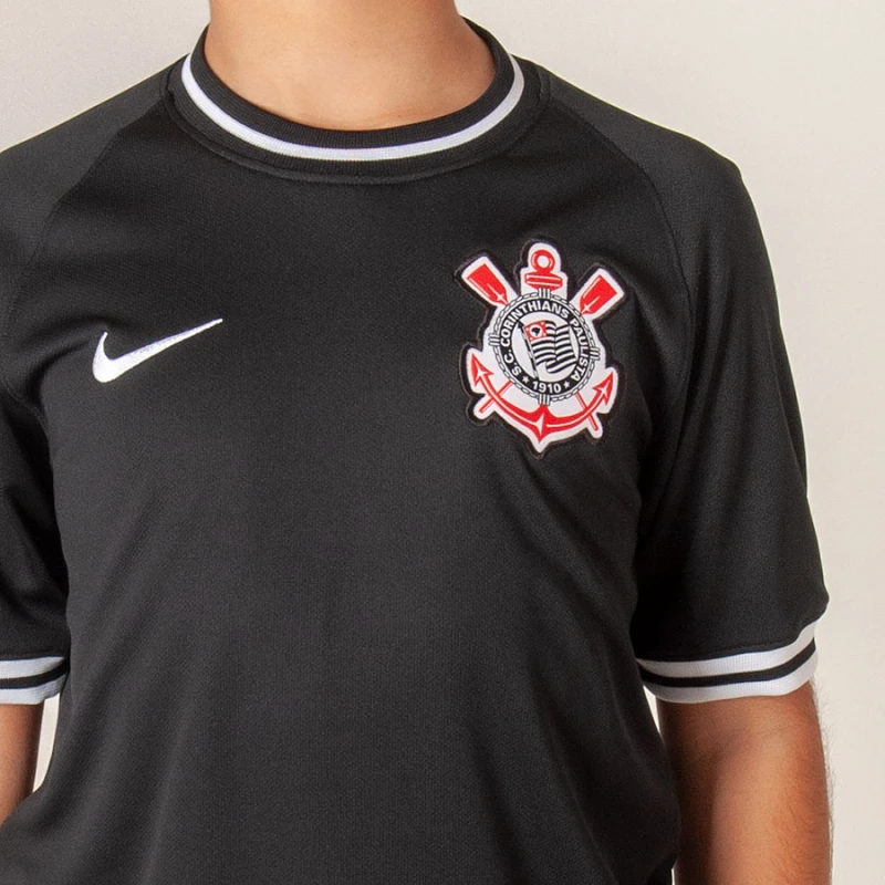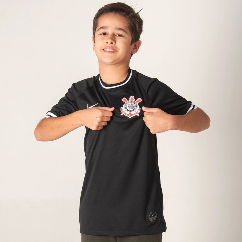 A Camisa Nike Corinthians Oficial 2 2019/20 Sem Número Infantil é inspirada no tradicional modelo usado pela torcida e homenageia 50 anos dos Gaviões da Fiel.