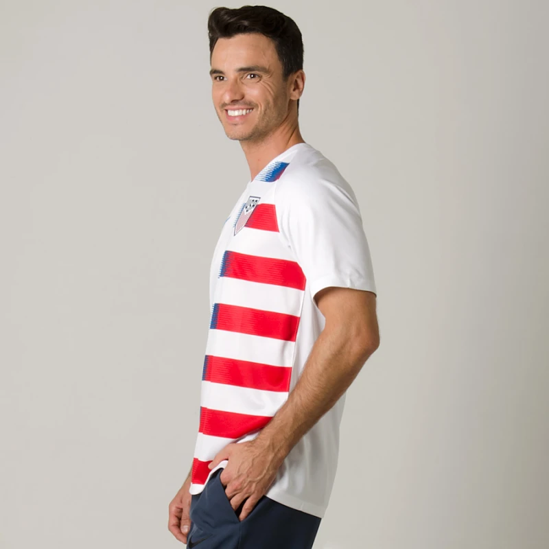 O escudo da Seleção dos Estados Unidos em destaque permite que você demonstre todo orgulho pela The Red, White & Blue (A Vermelha, Branca e Azul) dentro e fora dos gramados.
