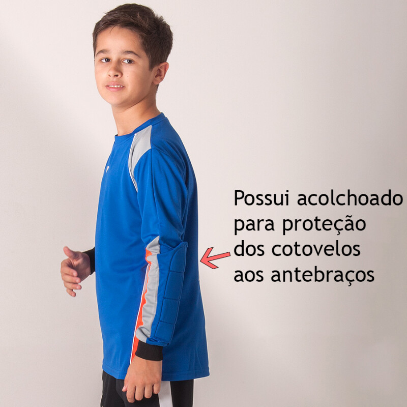A Camisa Poker Goleiro Astro Manga Longa Infantil tem proteções acolchoadas (nos cotovelos) com espuma de alta densidade, desenvolvida para suportar altos impactos.