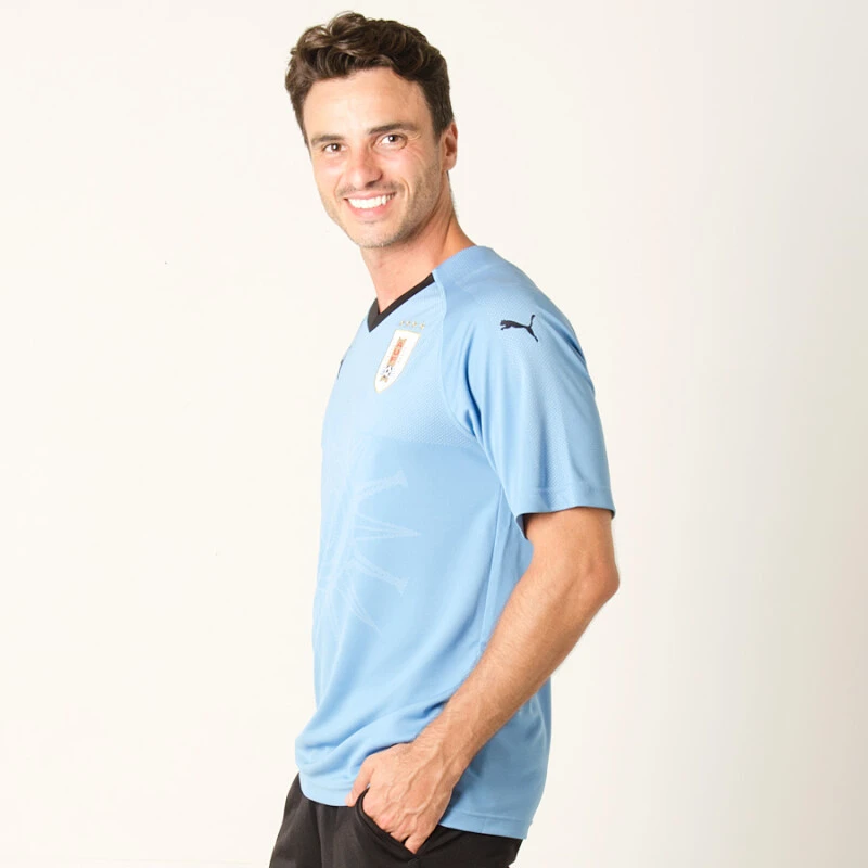 Além disso, a Camisa Puma Uruguai Oficial 1 2018 Sem Número conta com gola V e as mangas curtas complementam os detalhes.