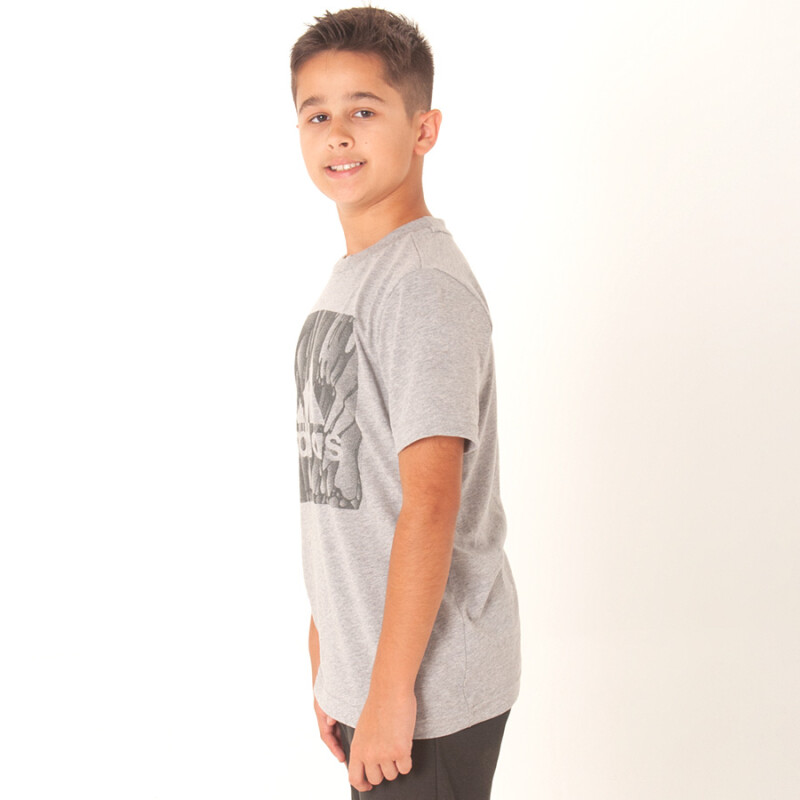 Medidas do modelo Arthur que veste a Camiseta adidas Must Haves Box Infantil na cor: Cinza no tamanho: 12 anos