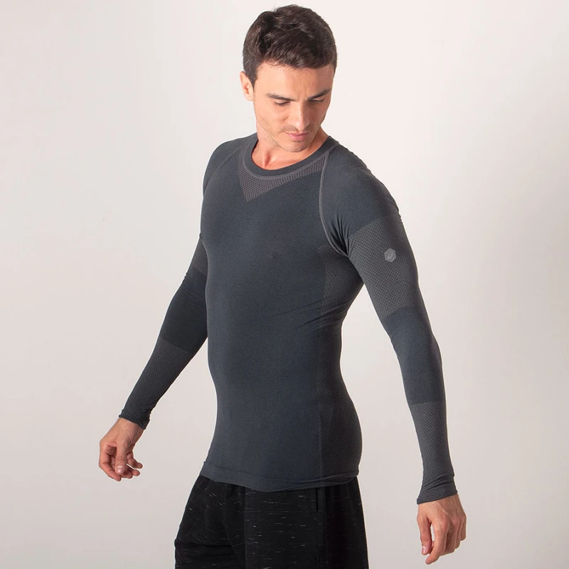 CAMISETA ASICS COMPRESSÃO LEGENDS SEAMLESS MANGA LONGA MASCULINA - Chumbo