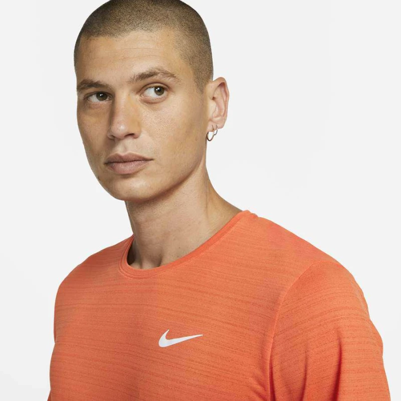 CAMISETA DE CORRIDA NIKE DRI-FIT MILER MASCULINA - Laranja/prata