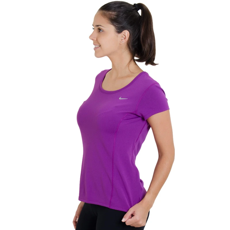 A linda Camiseta Nike Dri Fit Contour SSL Feminina vem confeccionada em poliéster, é leve e confortável, a peça que faltava no seu look de ir malhar ou correr.