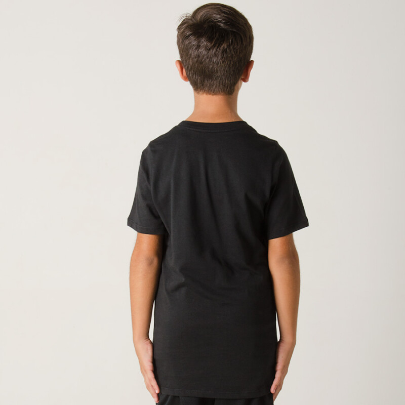 Medidas do modelo Arthur que veste a Camiseta Nike Tee JDI Dunk Infantil na cor: Preto/Azul no tamanho: 10A
