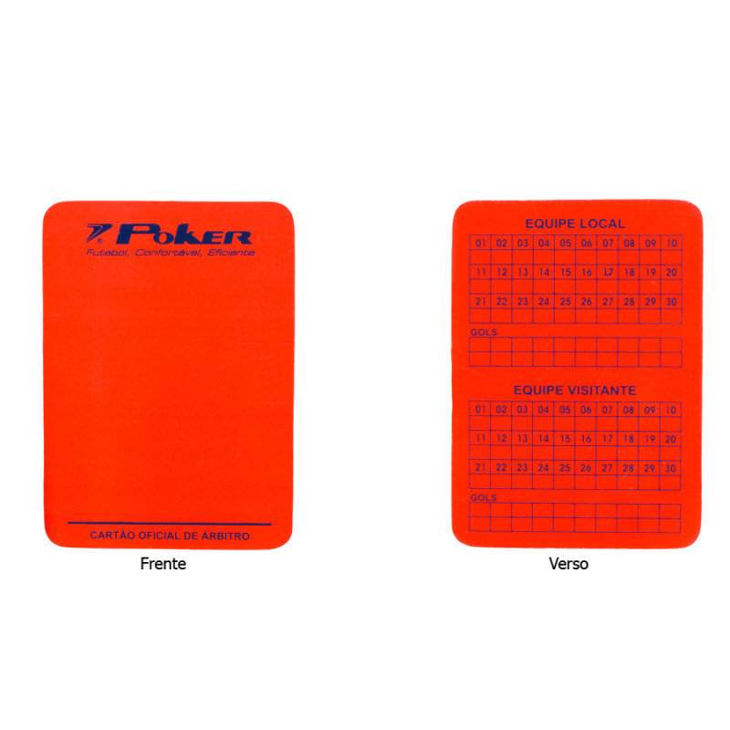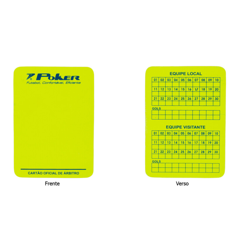 O juiz que é o responsável por cumprir as regras durante os jogos, necessita para sua função ser executada com sucesso, o Cartão p/ árbitro Futsal Poker, composto por três peças coloridas, conta com espaço para anotações na parte de traz.