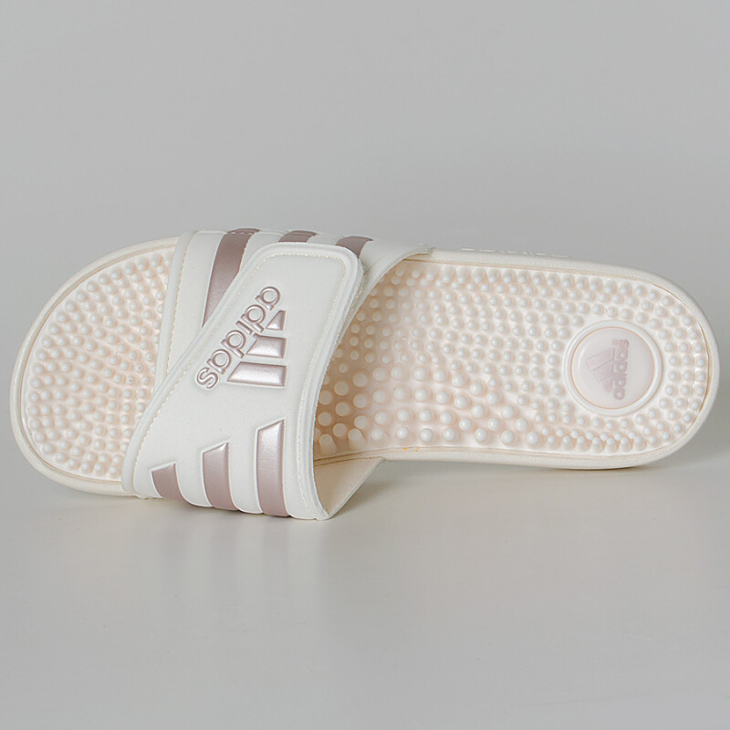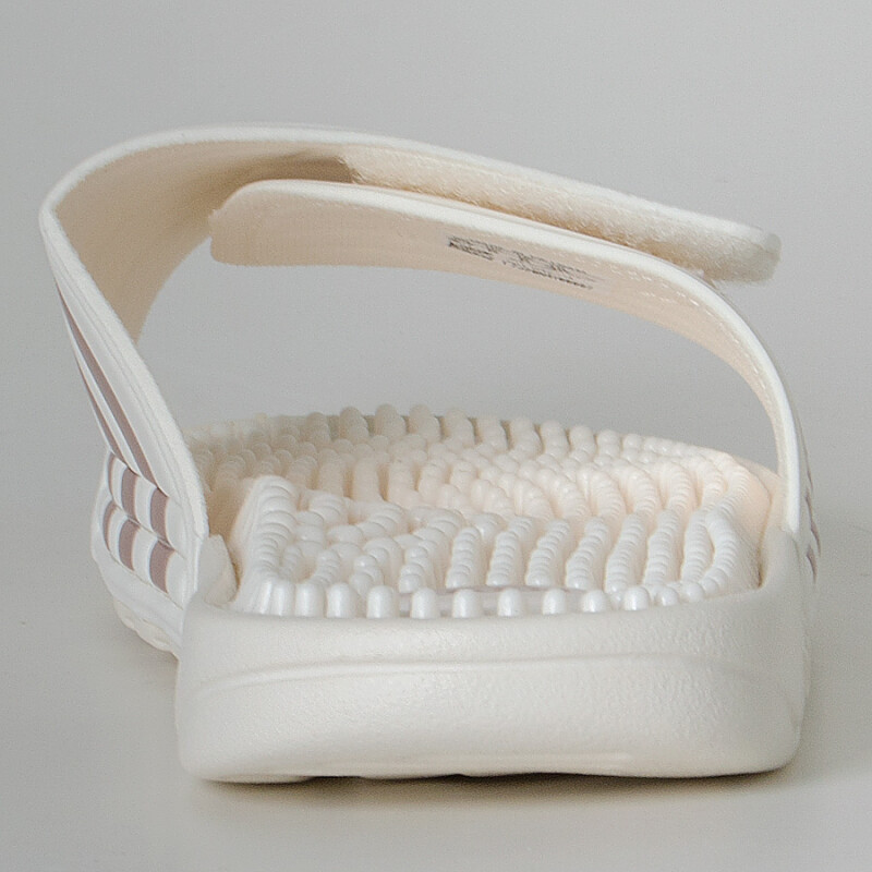 Em sua composição o adidas adissage conta com um sistema de massagem com pinos que promovem o diferencial do produto, além de sua alça que permite um encaixe perfeito.