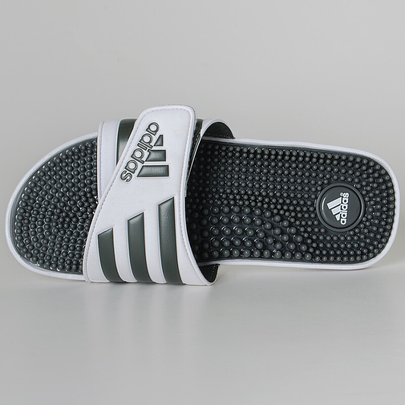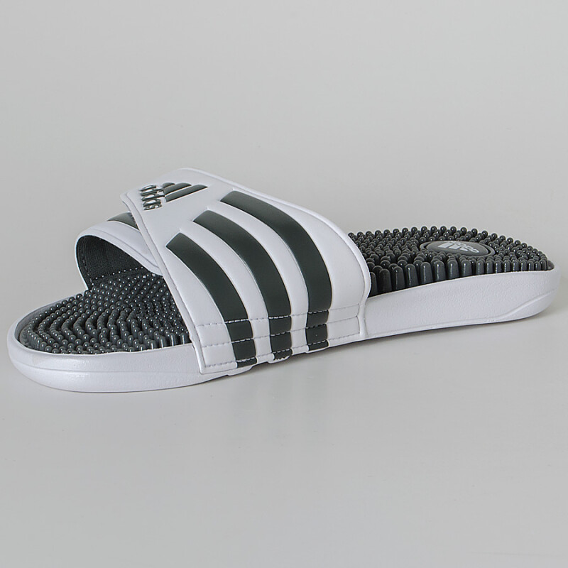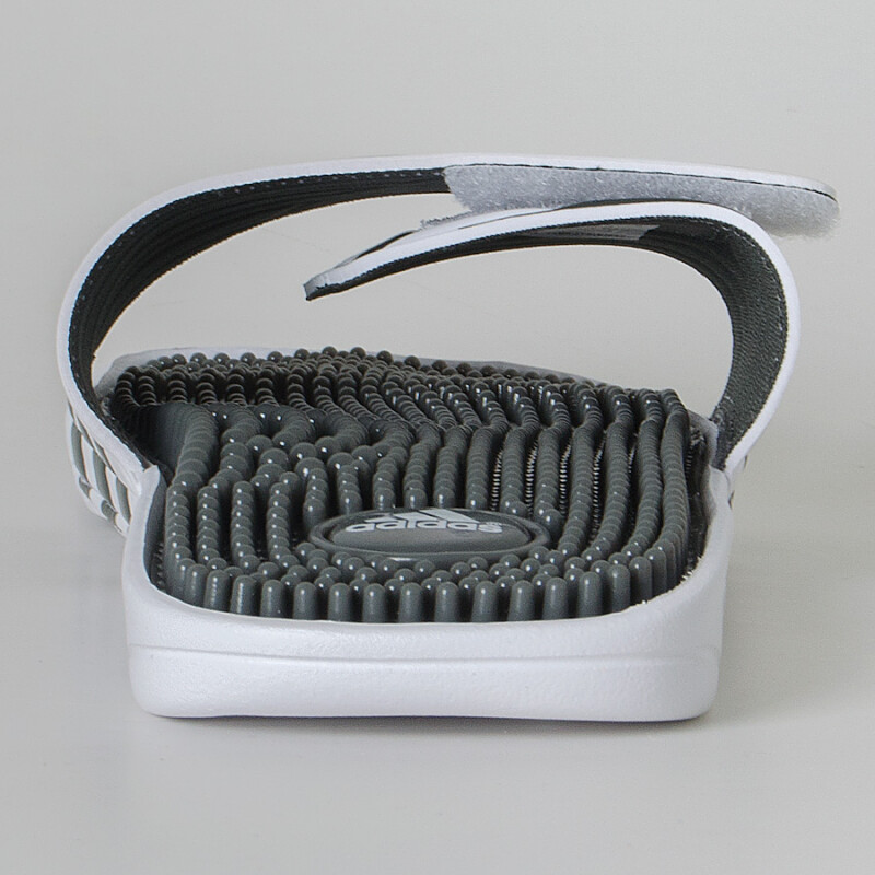 Em sua composição o adidas adissage conta com um sistema de massagem com pinos que promovem o diferencial do produto, além de sua alça que permite um encaixe perfeito.