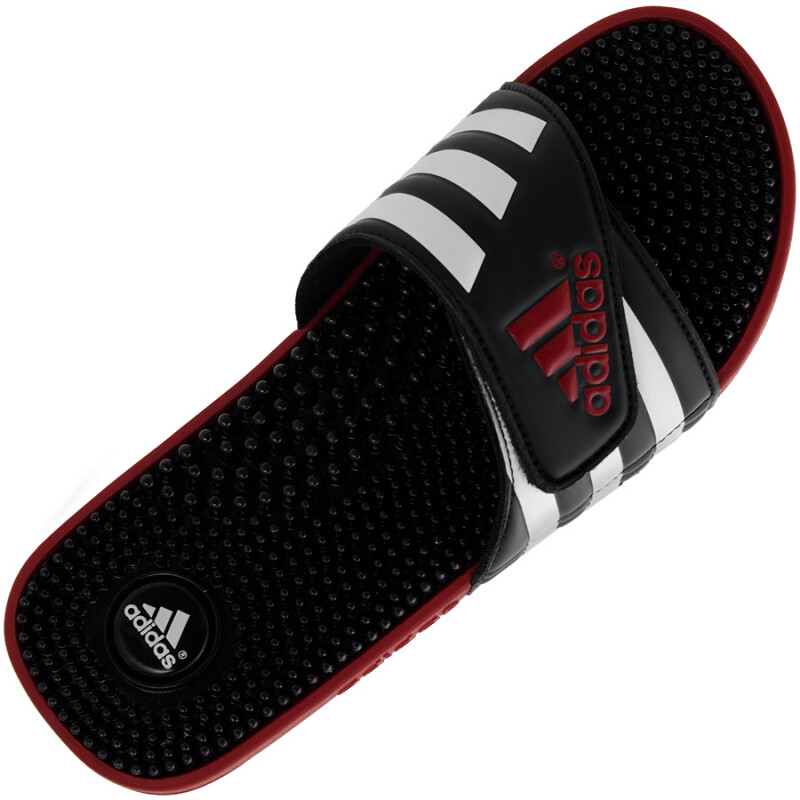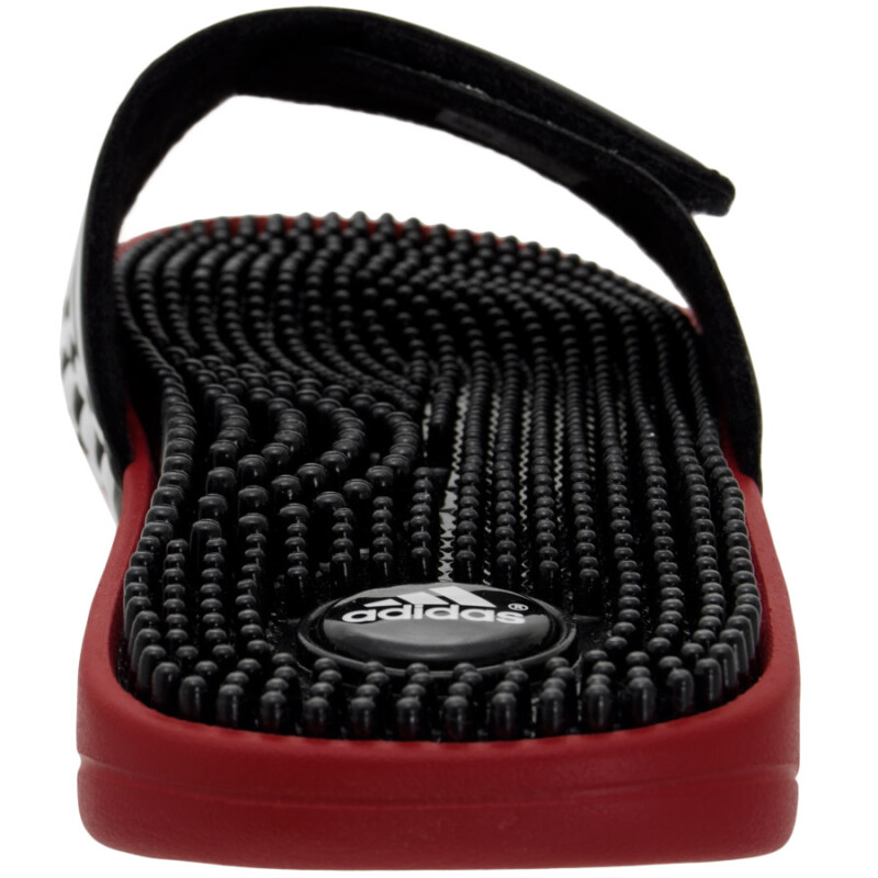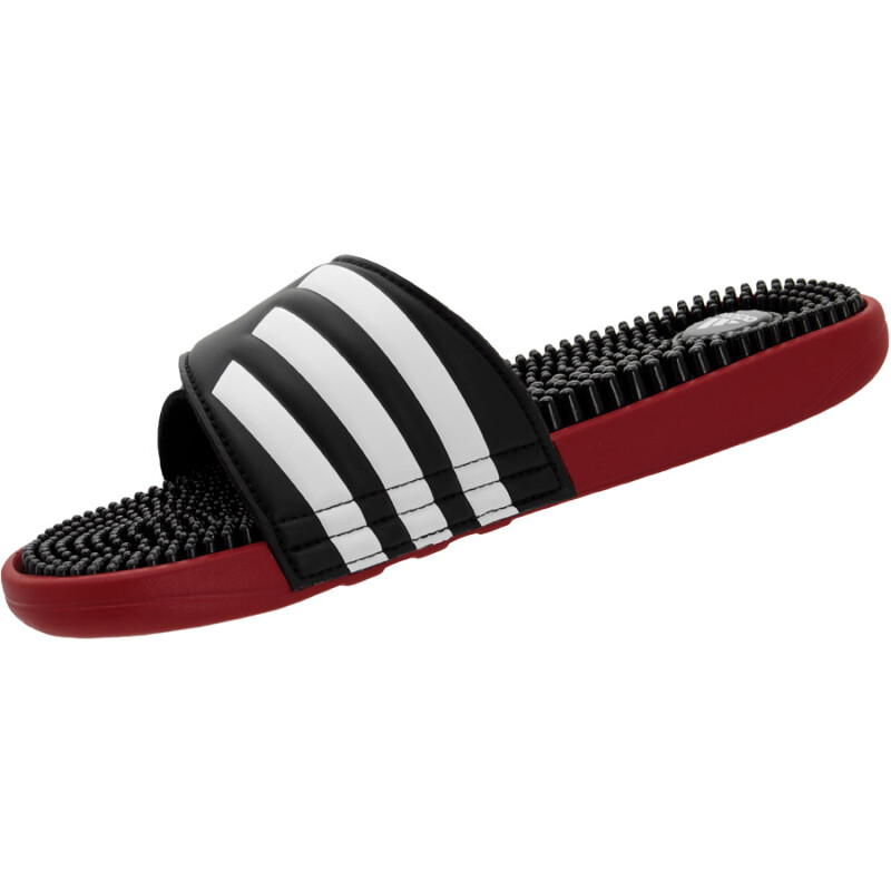 Em sua composição o adidas adissage conta com um sistema de massagem com pinos que promovem o diferencial do produto, além de sua alça que permite um encaixe perfeito.