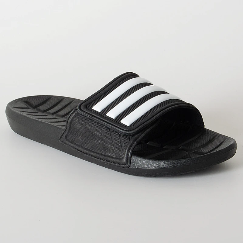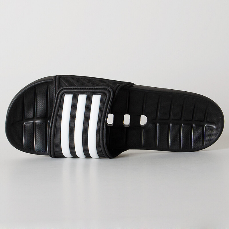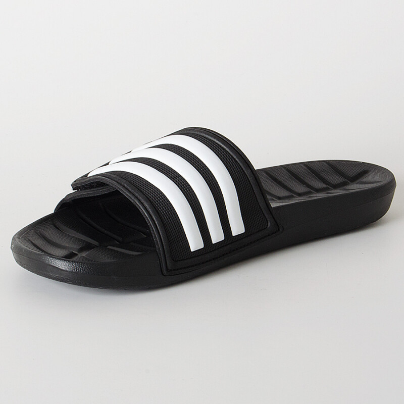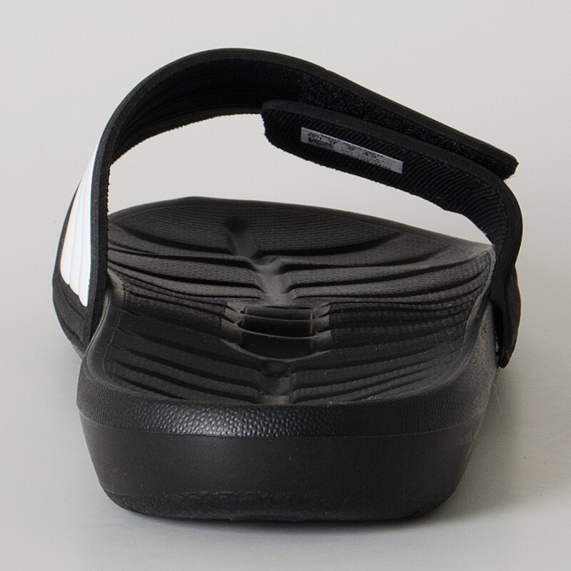 O Chinelo adidas Kyaso Adapt Masculino é composto por uma base moldada com recortes que auxiliam na circulação de ar e drenagem de água.