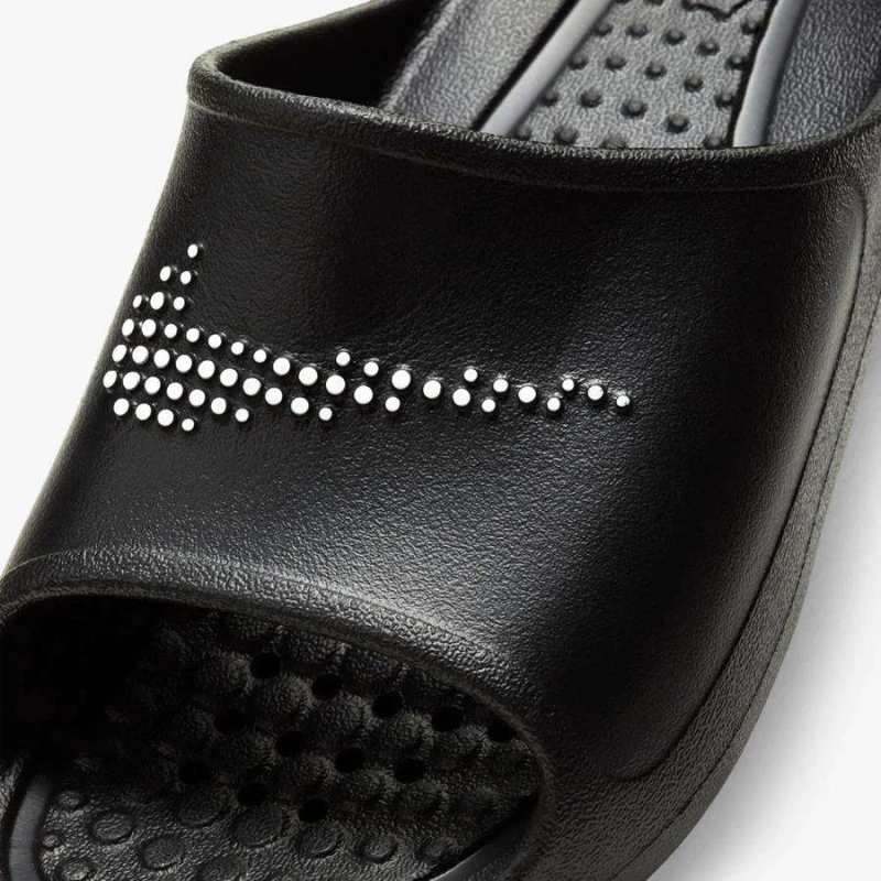 O design de peça única em espuma é extremamente macio e confortável, enquanto os padrões de tração na sola ajudam a locomover-se em superfícies molhadas.