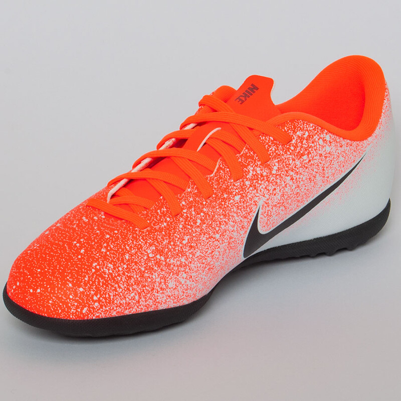 A Chuteira Nike Mercurial Vapor 12 Club TF Infantil envolve o seu pé para conforto durável e controle excepcional da bola em gramados artificiais.