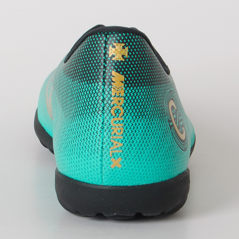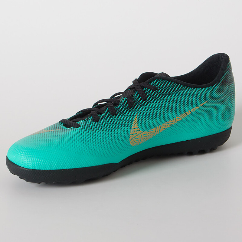 CHUTEIRA NIKE VAPORX 12 CLUB CR7 TF - Verde/dourado