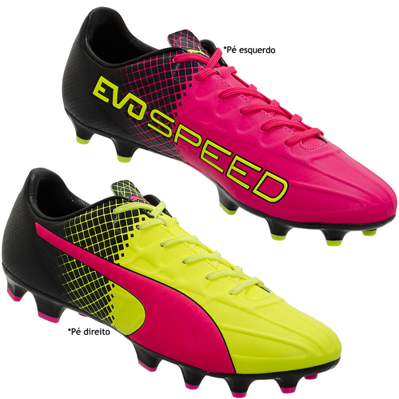 Com a Chuteira Puma Evospeed 4.5 Tricks FG BDP os boleiros vão longe em campo. A Puma apresenta novo design para os craques surpreenderem os adversários a cada drible. Cada pé exibe uma cor diferente e cores contrastantes.Indicado para:- Futebol de Campo;- Gramado.Especificações: Referência do fornecedor na cor:Pink/Amarelo: 103915-01